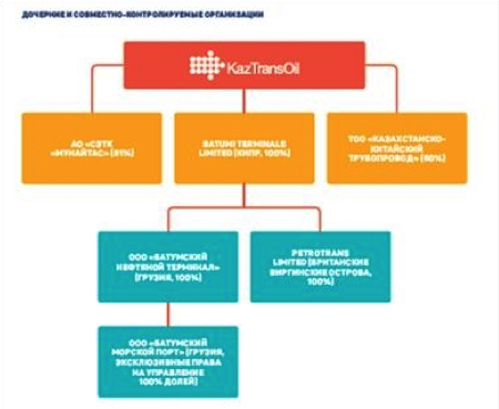 - транспортировка нефти — оказание услуг по транспортировке нефти по магистральным трубопроводам в Республике Казахстан. Организация транспортировки казахстанской нефти по трубопроводным системам других государств. Перевалка и хранение углеводородов через Батумский нефтяной терминал и услуги по перевалке грузов в Батумском морском порту;