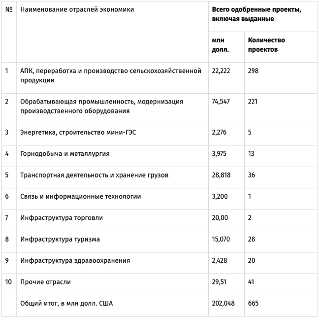 На 13.02.2017 г. льготные кредиты Фонда выданы уже под 665 проектов. Суммарный объем выданных займов составил 202,048 млн долл.