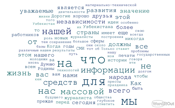 Самые употребляемые слова в праздничном обращении Ислама Каримова к журналистам (28 июня 2016 года)