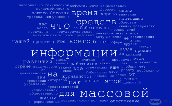 Самые употребляемые слова в обращении Ислама Каримова к журналистам (28 июня 2014 года)