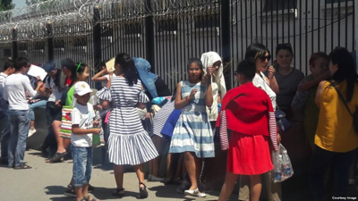 - Приехал из ошского Алая. В Бишкеке гостиницы дорогие, поэтому ночую в машине. Вокруг посольства машины парковать запрещается. Приходится ставить машину в Антоновке и ночевать там. Мы встали в очередь 205-ми. Спрашивал, говорят, что мы зайдем через две недели. Даже если выдадут через две недели, то моя дочь все равно опаздывает. Несмотря на это, мы ждем своей очереди.