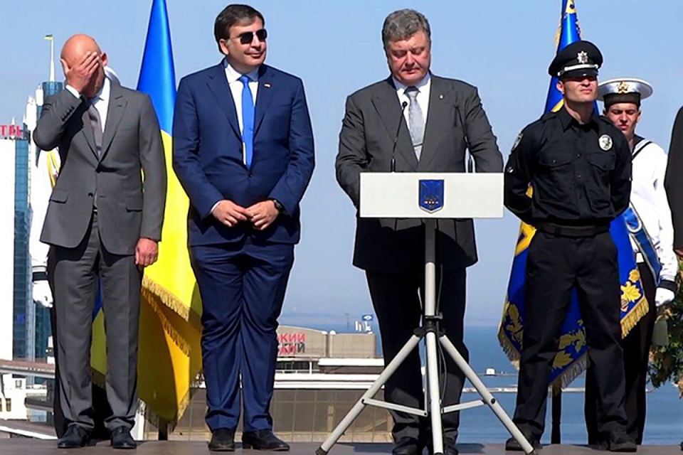 А в феврале 2015 года стало известно об отказе генпрокуратуры Украины экстрадировать на родину Михаила Саакашвили и экс-главу МВД Зураба Адеишвили по запросу главной прокуратуры Грузии. 6 марта грузинский премьер Ираклий Гарибашвили заявил: «Лично я удивлен тем, что нынешние власти Украины общаются с Саакашвили. Мне сказали, что его взяли туда советником (президента Порошенко.— “Ъ”). Я также видел кадры, где министр госбезопасности Украины спрашивает советов у Саакашвили. Мне кажется, это серьезная ошибка, так как Саакашвили — это человек, который не смог предотвратить войну в 2008 году, и брать советы у такого авантюриста — это очевидная ошибка».