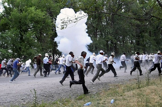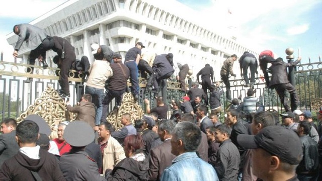3 октября 2012 года. В Бишкеке прошел митинг с требованием о национализации золоторудного предприятия «Кумтор», организованный депутатом парламента Садыром Жапаровым. Участники акции пытались прорваться на территорию Дома правительства. Милиция применила слезоточивый газ и шумовые гранаты. После стычки в больницы обратились 12 пострадавших, в том числе сотрудники правоохранительных органов.
