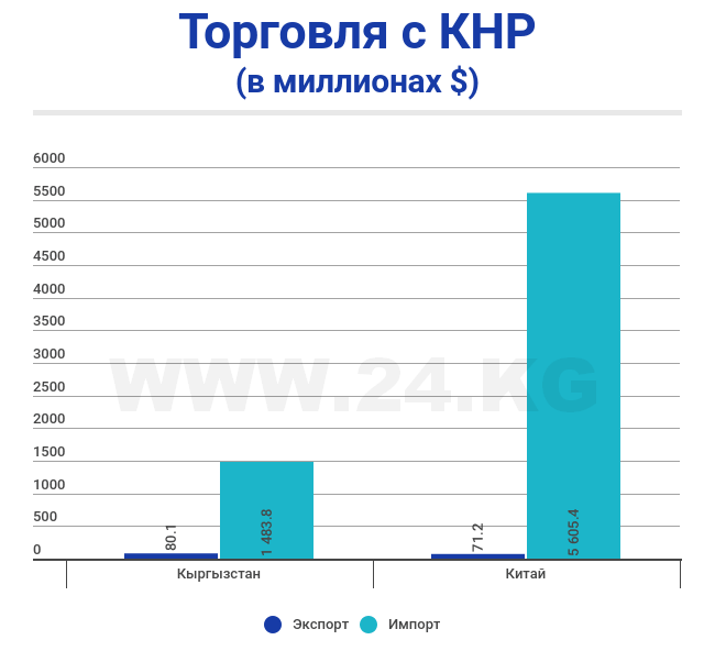 Стоит отметить, что КНР показывает более высокие цифры импорта товаров в Кыргызстан. А вот значение экспорта кыргызских товаров в Китай выше у таможенников нашей страны — на $8,9 миллиона сомов.