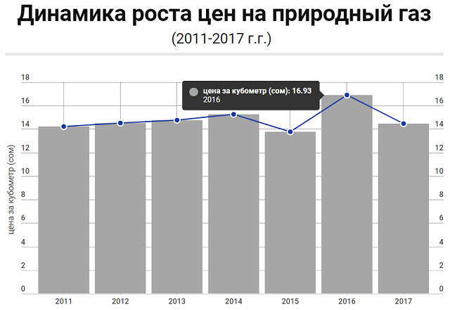 Аналогично складывалась ситуация и с отоплением. В 2011-м стоимость одной гигакалории составляла 715, а в 2017-м — 1134,76 сома.