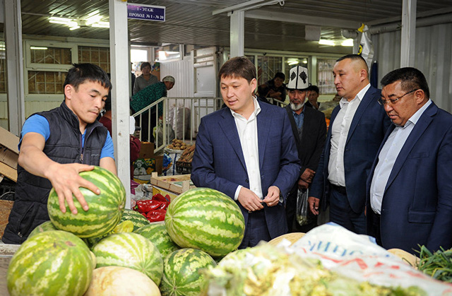Исаков на рынке города Нарын в ходе рабочей поездки