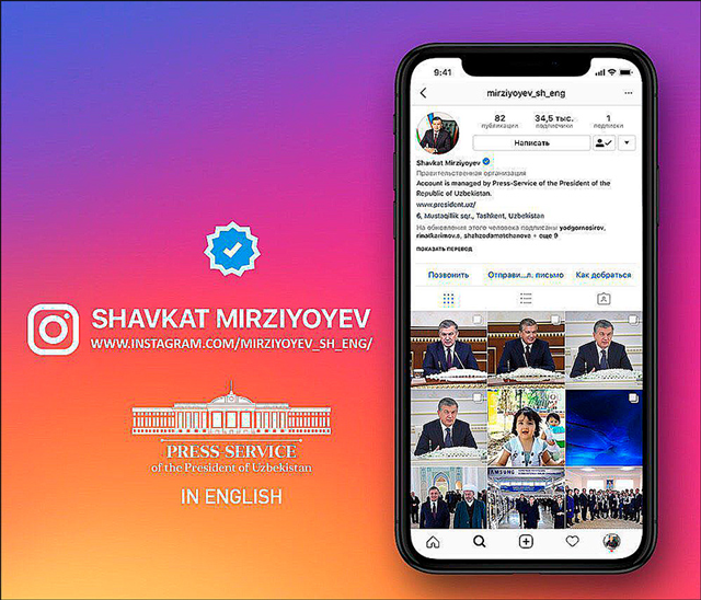 О верификации страницы Мирзиёева в Фейсбуке Мининфоком Узбекистана сообщил на своем сайте минувшей осенью. Делегация из Узбекистана решила этот вопрос на встрече в Кремниевой долине с одним из топ-менеджеров социальной сети. В Телеграме у канала «Shavkat Mirziyoyev_press-service» также стоит белая «галка» – по нашим наблюдениям, больше ни у кого из политиков подтвержденного канала в этом сервисе нет. Там у Мирзиёева 85,5 тысячи подписчиков и их количество растет, в среднем, на пять человек в минуту.