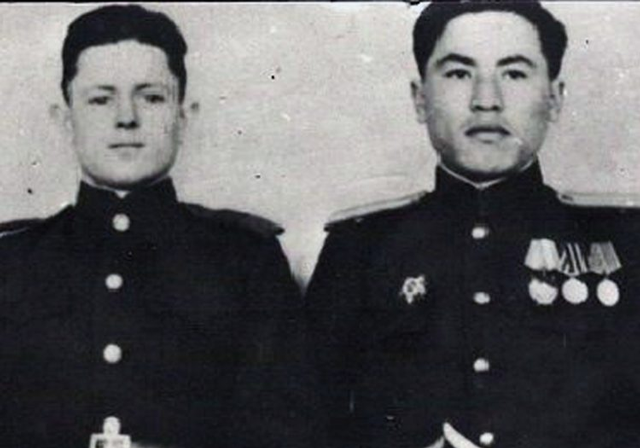 Султан Баймагамбетов, который закрыл грудью амбразуру дзота, за что посмертно получил звание Героя Советского Союза.