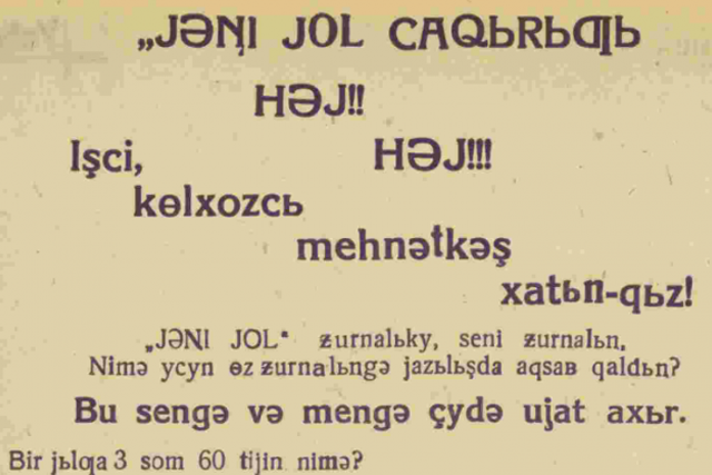 Реклама на яналифе в узбекском журнале «Янги юл», 1933 год