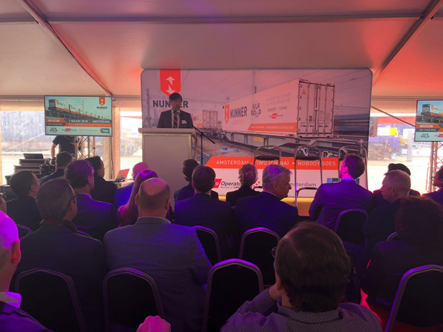 «Сегодня из Амстердама в китайский портовый город Иву начинает свой путь первый грузовой поезд. Из 11 тысяч километров, которые пройдет этот состав, почти 3 тысячи километров пролегают по территории Казахстана», - сказал посол РК в Нидерландах Магжан Ильясов.