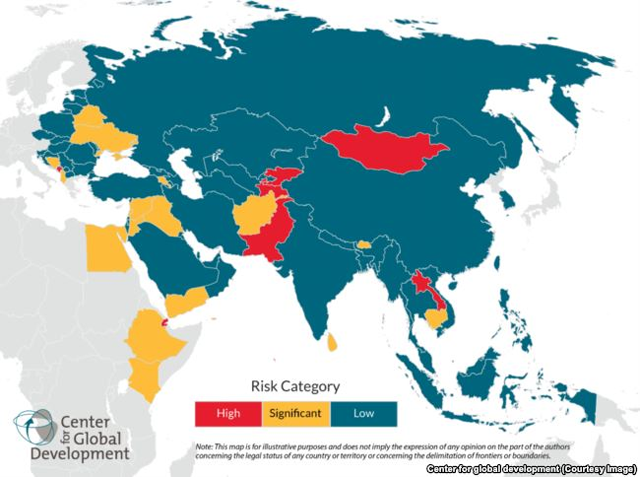 В своем докладе, опубликованном 7 марта, Center for Global Development выражает «особую озабоченность» восемью странами, которые могут пострадать от долгового бремени в рамках программы Китая «Один пояс – один путь» - Джибути, Лаос, Мальдивы, Монголия, Черногория, Пакистан, Таджикистан и Кыргызстан.