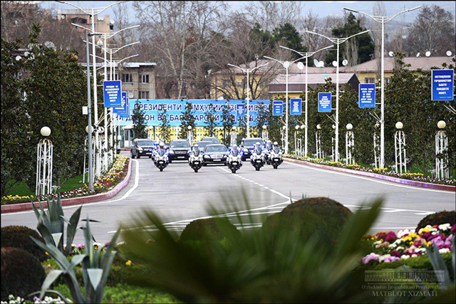 Кортеж Шавката Мирзиёева в Душанбе. Фото пресс-службы президента Узбекистана