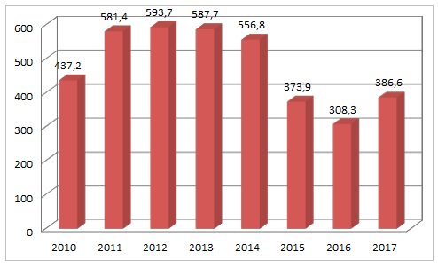 Обращает на себя внимание тот факт, что в 2017 году экспорт товаров ($386,6 млрд) рос быстрее импорта ($247,2 млрд), который по сравнению с 2016 годом также имел тенденцию роста.