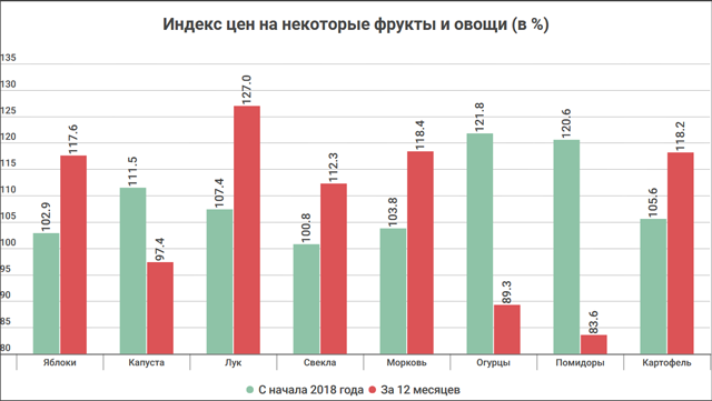 Если говорить о товарах, «разгоняющих» инфляцию в 2018 году, в основном рост цен отмечен на овощную продукцию, которые подорожали на 11,9%.