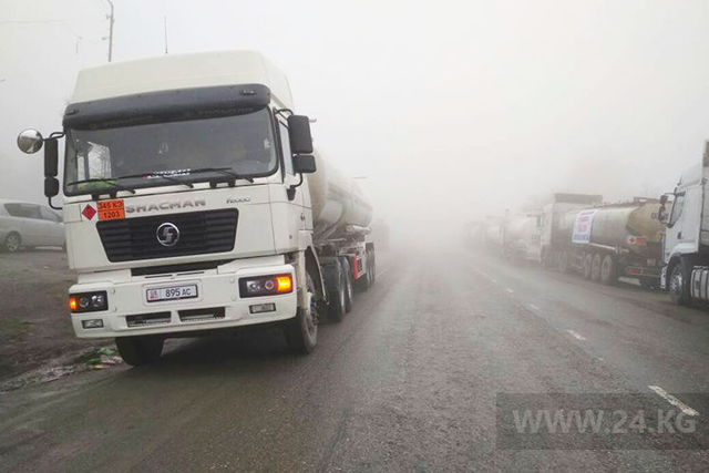 В селе Сосновка по обеим сторонам трассы Бишкек — Ош выстроились колонны, в них 150 фур.