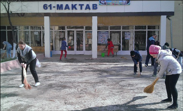 Добровольный субботник в одной из школ Узбекистана. Фото с сайта Gazeta.uz