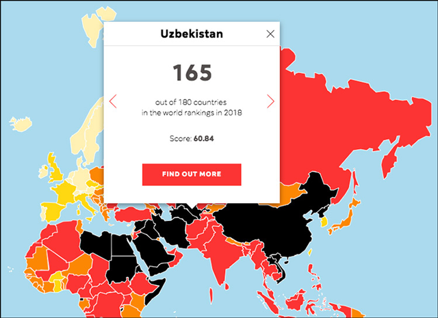 Казахстан, находившийся в прошлогоднем рейтинге на 157 месте, опустился на 158-е. Позиции России, Таджикистана и Туркменистана с 2017 года не изменились: Россия остается на 148 месте, сразу после нее следует Таджикистан (149 место). Туркмения остается на одной из последних позиций (178 место) – хуже, чем там, со свободой прессы дела обстоят только в Эритрее и КНДР.