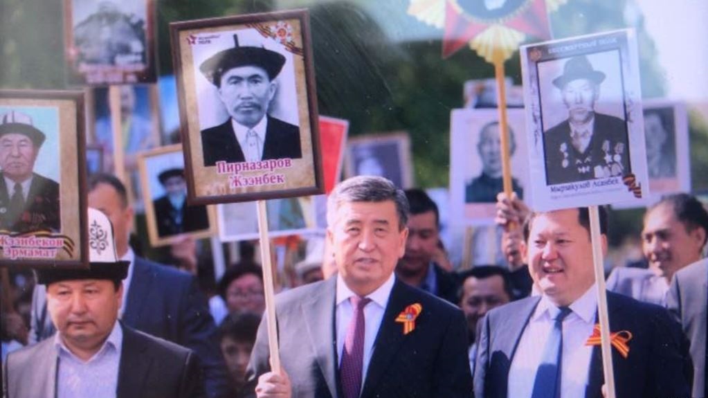 Президент Киргизии Сооронбай Жээнбеков тоже принял участие в этой памятной акции. Глава государства нес портрет своего деда Жээнбека Пирназарова, числящегося в списке без вести пропавших в годы Великой Отечественной войны.