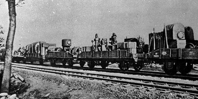 Поезд с оборудованием эвакуированного завода идёт на восток, 1941 год