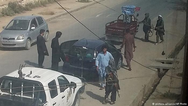 Талибы патрулируют улицу в захваченном Кундузе, сентябрь 2015 года