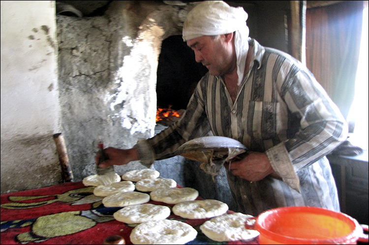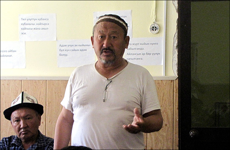 Рядом с лепешечным цехом находится своего рода привал, где приезжие останавливаются на некоторое время отдохнуть, чтобы набраться сил для дальнейшего пути. Здесь мы случайно познакомились с Саатбеком Анаровым – депутатом местного кенеша (законодательного органа) Аксайской айыл окмоту Баткенского района. Раньше он был учителем истории, потом в течение многих лет работал в программах международных организаций по формированию атмосферы толерантности в зонах на киргизско-таджикской границе, где возникают очаги напряженности. По его словам, большинство местных жителей понимают, насколько драгоценны стабильность и добрососедство в приграничных селах, тем не менее стихийно возникающих конфликтов пока избежать не удается.