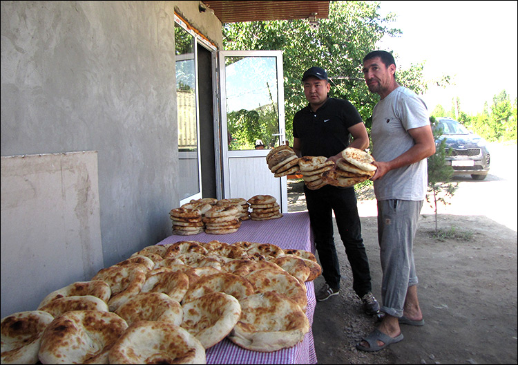 - Хотя в нашем селе есть лепешечная, но, мне кажется, эти лепешки вкуснее, — замечает Холматов. Интересно, что владельцы лепешечной покупают муку и уголь у киргизов — у них дешевле.