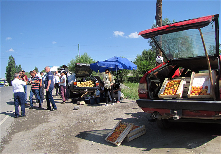 Мы прошли пешком от одного КПП до другого. Вместе с нами таджикско-киргизскую границу пересекала группа женщин из приграничных сел Исфаринского района. Оказалось, что они работают на полях киргизских фермеров, пропалывают рисовые и кукурузные плантации. Некоторые из них занимаются сбором и сушкой абрикосов.