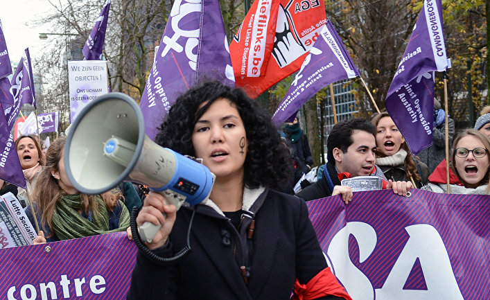 Участники международной акции в Брюсселе за ликвидацию насилия в отношении женщин. 26 ноября 2017