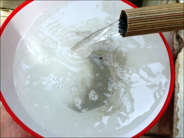Песок и мелкие примеси в воде из крана во дворе в Душанбе. Фото «Ферганы», июль 2018 года