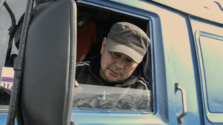 Водитель грузовика из Кыргызстана Асангоджаев доволен новыми технологиями, такими как автоматическая система весового контроля на новых дорогах. «Хорошо, что весы автоматические. Мы проезжаем очень быстро, без задержек, менее чем за пять минут», – говорит он. [Группа Всемирного банка]