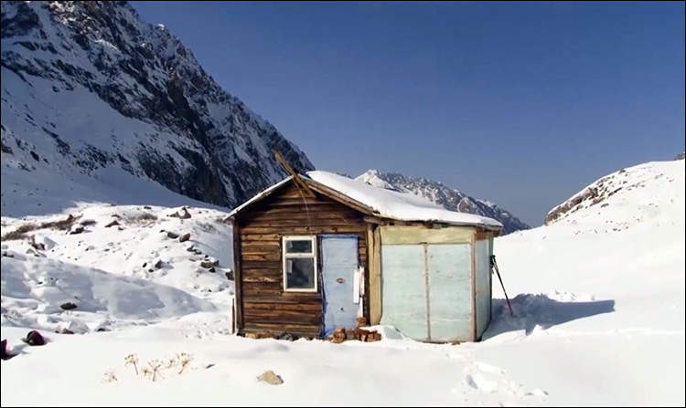 Временный домик гляциологов в горах Киргизии. Кадр видеозаписи с сайта Currenttime.tv