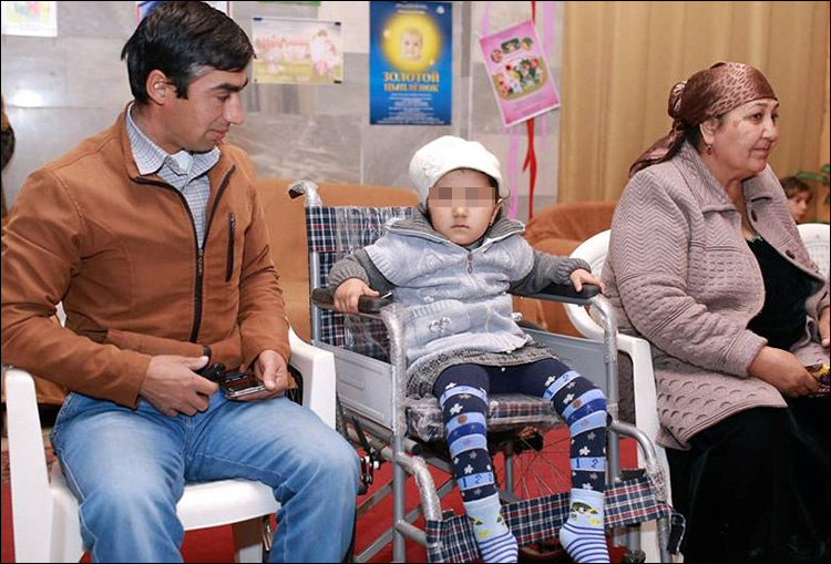 Девочка в ДЦП, получившая новое кресло на средства благотворителей. Фото предоставлено фондом «Рушди Точикистон»