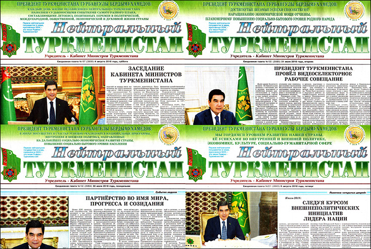 Передовицы различных выпусков «Нейтрального Туркменистана». Иллюстрации с сайта Parahat.info