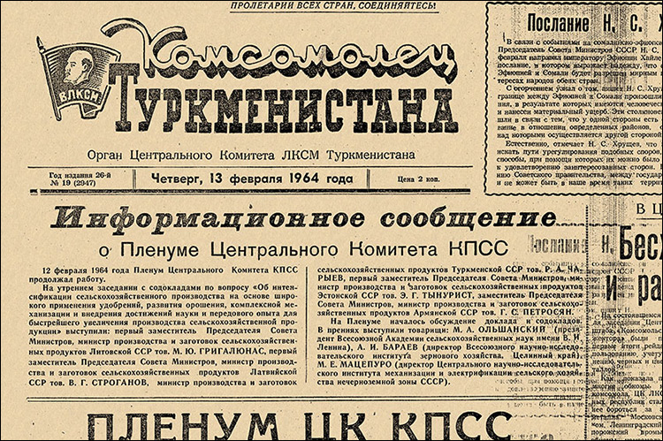 Экземпляр «Комсомольца Туркменистана» за 1964 год. Иллюстрация с сайта Meshok.net