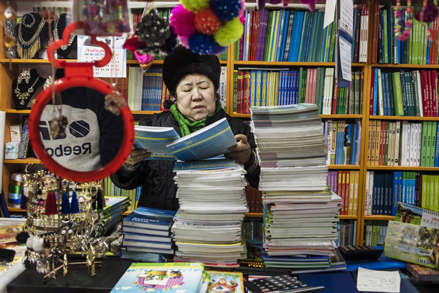 Женщина продает учебники в подземном переходе в центре Бишкека. Фото: Даниль Усманов для Kloop.kg