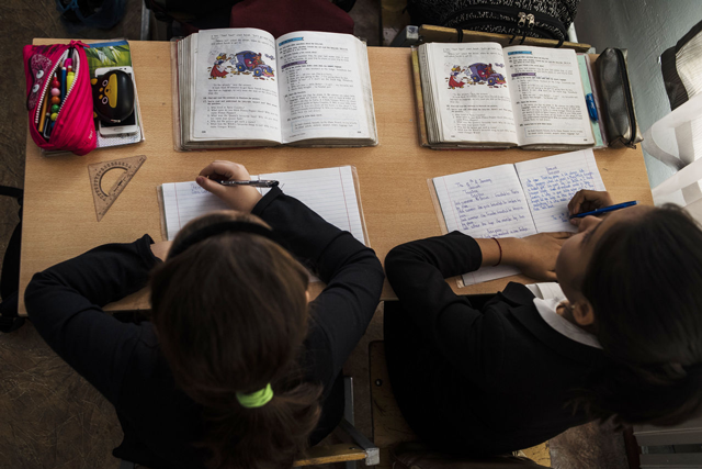 Ученицы на уроке в бишкекской школе №67. Фото: Даниль Усманов для Kloop.kg