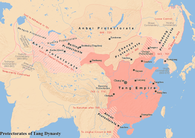 Карта шести главных протекторатов династии Тан (Wikipedia)