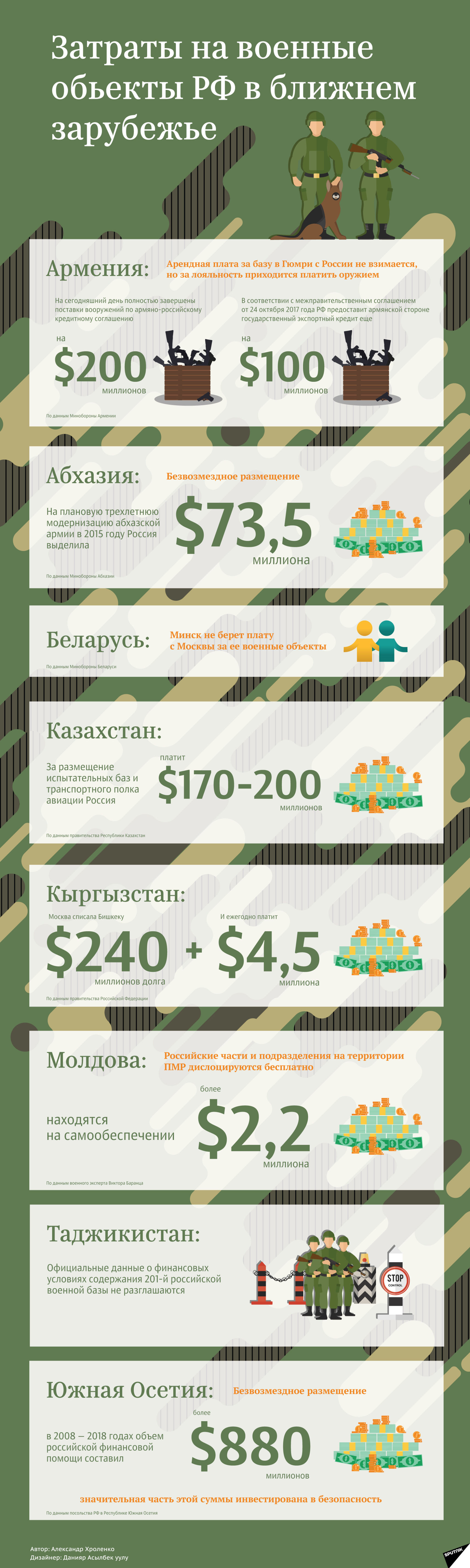 Затраты РФ на военные объекты на территории стран СНГ