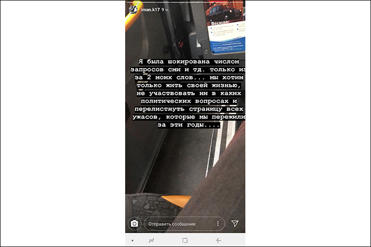 Скриншот Instagram-stories Иман Каримовой