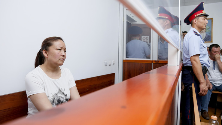 41-летняя Сайрагуль Сауйтбай, этническая казашка из Китая, ожидает приговора. Жаркент, Казахстан, 13 июля. 1 августа она получила условный срок по обвинению в незаконном пересечении китайско-казахской границы, чтобы встретиться со своей семьёй в Казахстане. В ходе суда над ней был поднят вопрос о секретных «исправительных лагерях» в западном Китае, где, предположительно, содержатся сотни тысяч мусульман. [Руслан Пряников/АФП]