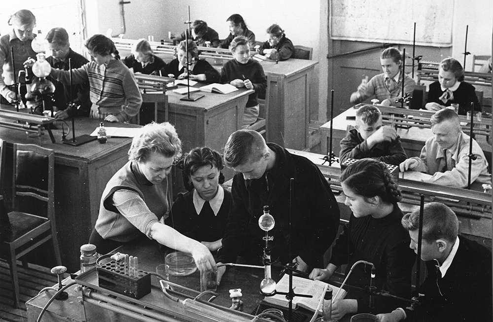 Урок по химии в восьмом классе средней школы имени А.С. Пушкина в Небит-Даге (нынешнем Балканабаде), Туркменская ССР.