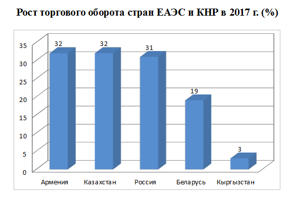 В рамках торгово-экономического сотрудничества участники проектов подсчитывают дивиденды. Так, в 2017 году между странами ЕАЭС и Китаем был отмечен рост торгового оборота. Удельный вес КНР во внешней торговле ЕАЭС составил 16,2%.