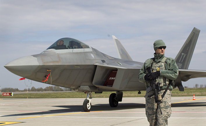 Истребитель ВВС США F-22 Raptor на авиабазе Шяуляй в Литве