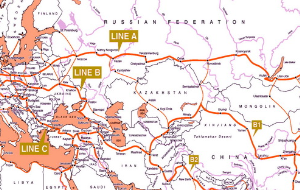 Большое значение будет иметь формирование субрегионального транспортного коридора Россия-Казахстан-Узбекистан-Туркменистан-Иран-Оман-Индия и железной дороги Узбекистан-Кыргызстан-Китай, которая сомкнётся с магистралью Баку-Тбилиси-Карс в страны Южной и Восточной Европы и Ближнего Востока в рамках проекта „Восток-Запад“».