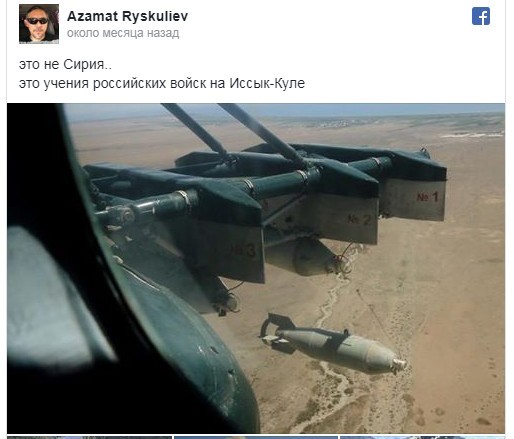 На войне как на войне – психологической… Без фейков она не обходится. Это фото сделано не на недавних “учениях российских войск”, а на тренировках кыргызских (!) лётчиков на иссык-кульском полигоне “Эдельвейс” в июне этого года. Пугали кыргызстанские интернет-пользователи друг друга даже фотоснимками боевых действий… в других странах! Выдавая их за фото учений на Иссык-Куле. Логика всей этой истерии проста: не надо тренироваться, не надо защищаться, а российские войска – гнать из Кыргызстана! Но тогда здесь действительно будет Сирия…
