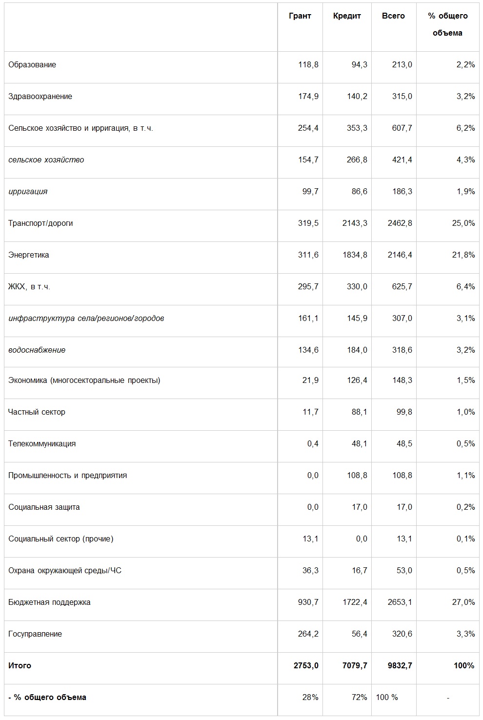 Все эти миллионные займы и гранты тратились по 15 основным направлениям. Самыми затратными в плане грантовых и бюджетных вложений стали такие отрасли как строительство дорог, сельское хозяйство и энергетика. Они забрали большую часть от полученных средств. Меньше всего финансов от доноров получил сектор образования.