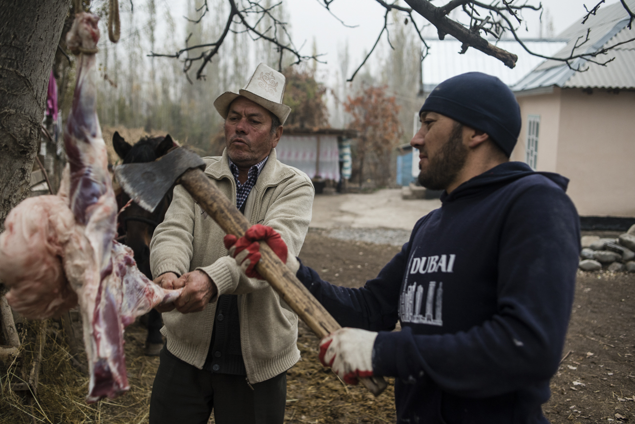 Жизнь в этом опасном месте напоминает азартную игру. Дома в селе Аюу расположены не компактно, а, наоборот, на большом расстоянии друг от друга вдоль длинной грунтовой дороги. Почти все семьи выращивают какие-то сельскохозяйственные культуры. В этом году Сулаймановы собрали рекордное количество сена. Коров, овец и коз отводят на безлесные крутые склоны, возвышающиеся с обеих сторон.