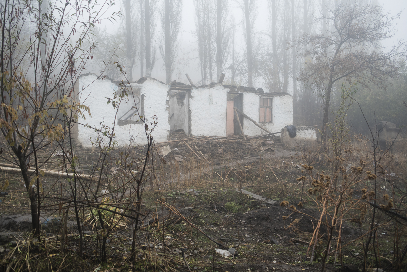 Напротив хозяйства Сулаймановых стоит заброшенный дом, который когда-то принадлежал женщине по имени Жамиля. Окна дома зияют пустыми глазницами, а все, что от него осталось, – это белые стены. Крышу разобрали на строительные материалы.
