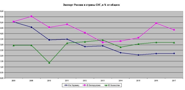 Важный аспект экономического сотрудничества состоит еще и в том, что сейчас Казахстан занимает второе место среди стран СНГ по величине экспорта из России после Белоруссии, а с 2012 года опережает по этому показателю Украину. Правда, этот позитивный тренд нигде в российской прессе особо отмечен не был.