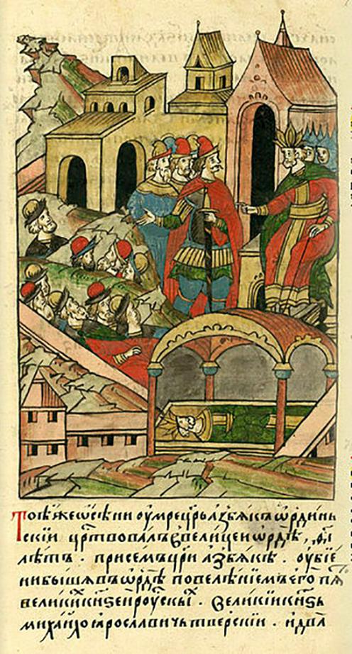 Смерть хана Узбека. Миниатюра из Лицевого летописного свода